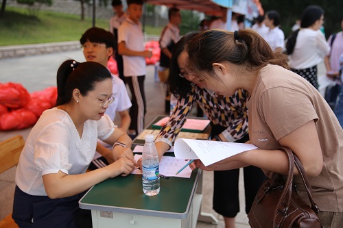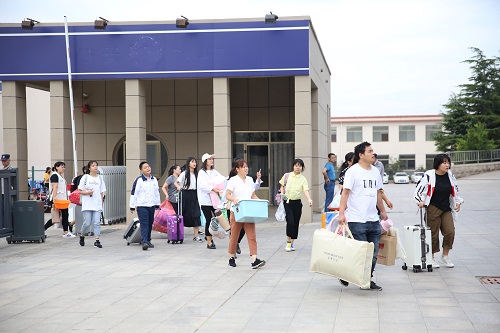 比太阳起的还早的是接待的老师和学长和学姐们,宿舍区、校门口服务志愿者迅速到位,确保新生第一时间感受来自学校最温暖、最贴心的服务,随着大家的到来,安静了一个暑假的校园终于热闹了起来。