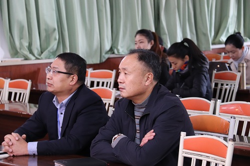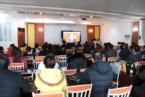 上午9点50分,综合楼二楼会议室主会场,各教室分会场准备就绪。10点整,大会准时开始,全体师生跟随会场音乐齐唱国歌,嘹亮的国歌声响彻校园。大会上,王沪宁首先宣读了《中共中央、国务院关于表彰改革开放杰出贡献人员的决定》,决定指出,党中央、国务院决定,授予于敏等100名同志改革先锋称号,颁授改革先锋奖章。向阿兰· 梅里埃等10名国际友人颁授中国改革友谊奖章,以感谢国际社会对中国改革开放事业的支持和帮助。中共中央总书记、国家主席、中央军委主席习近平发表重要讲话,回顾改革开放40年的光辉历程,总结改革开放的伟大成就和宝贵经验,动员全党全国各族人民在新时代继续把改革开放推向前进,为实现“两个一百年”奋斗目标、实现中华民族伟大复兴的中国梦不懈奋斗。